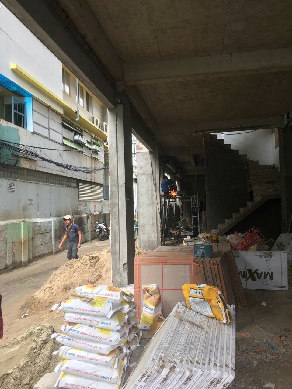 Sơn Akzonobel – màu ghi sáng, vàng kem, cafe. Kích thước cao 6m x rộng 5m